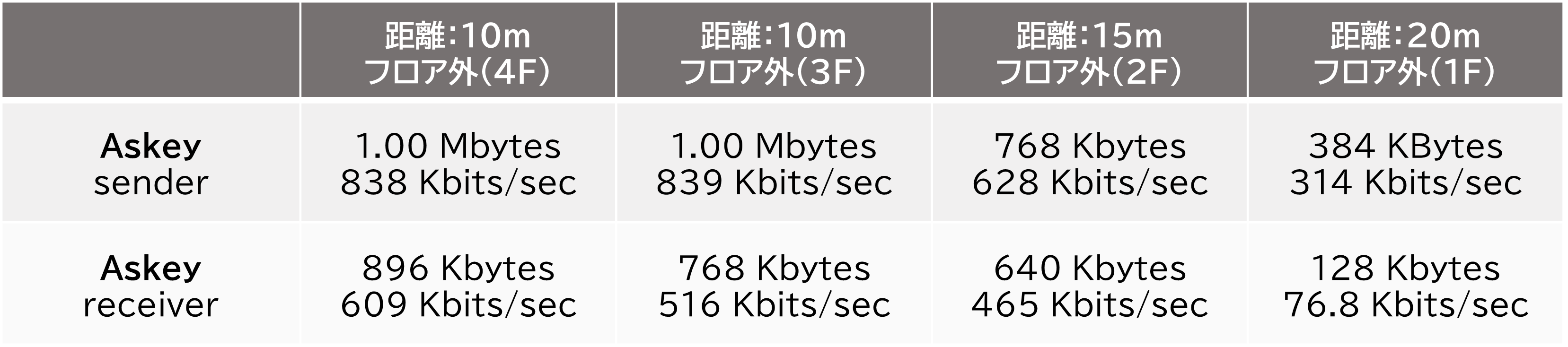- ※上記は当社内での実験結果です。 距離や環境に依存するため、実際の導入時は事前の検証をお願いいたします。