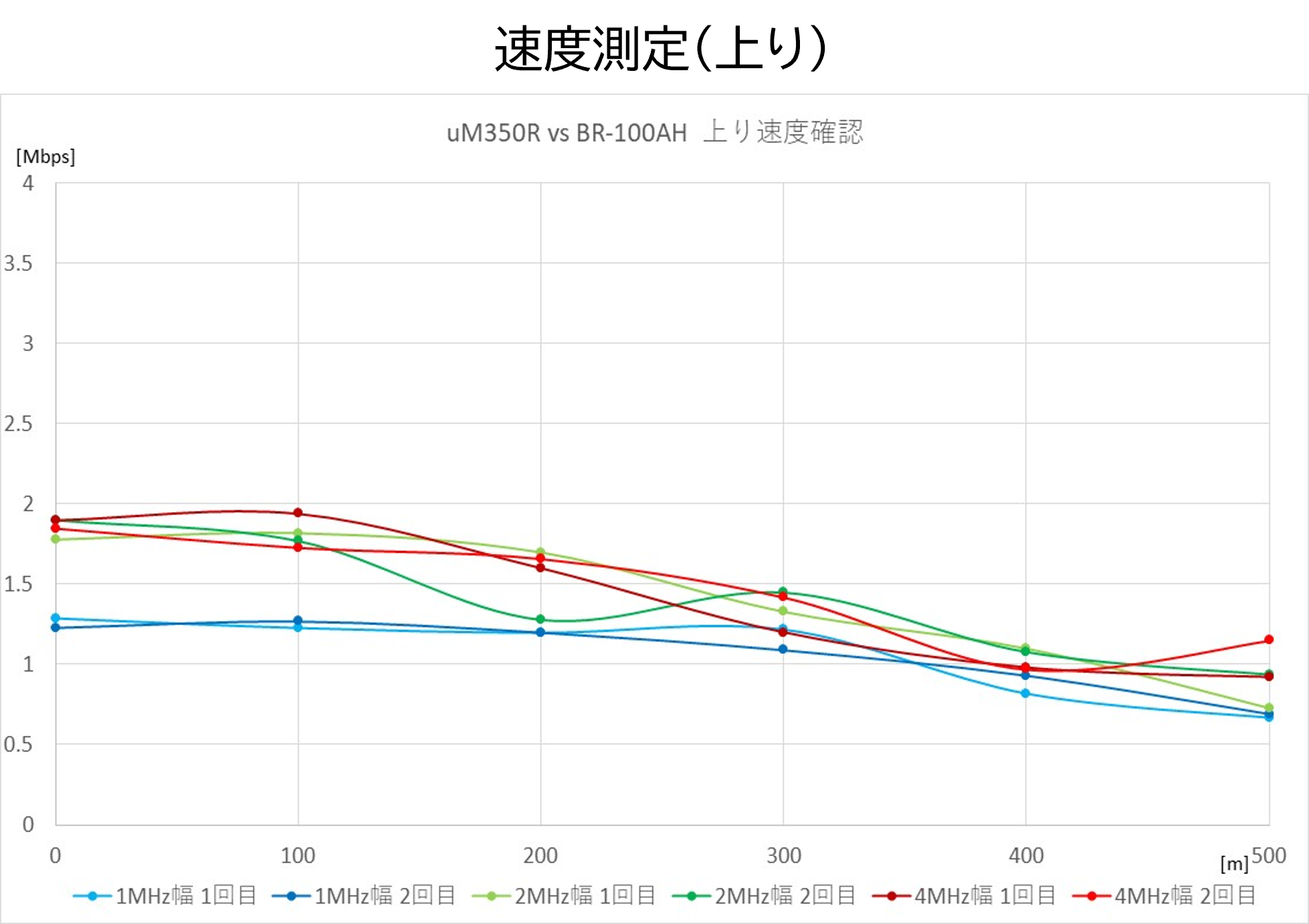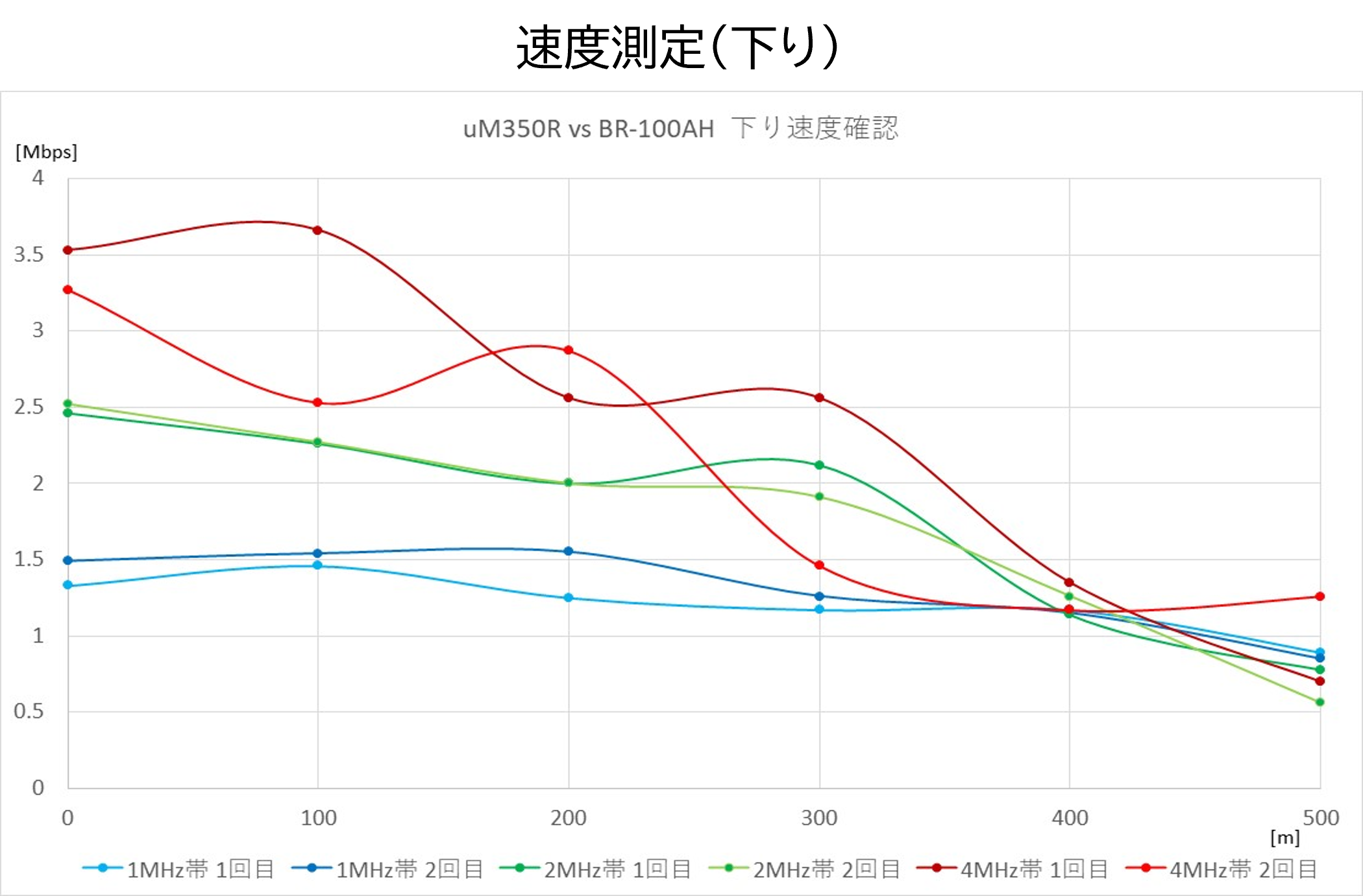 IEEE802.11ahの特性である通信距離が長いことを確認することができたが、アンテナ同士が目視で見えないロケーションでは速度は出なかった。