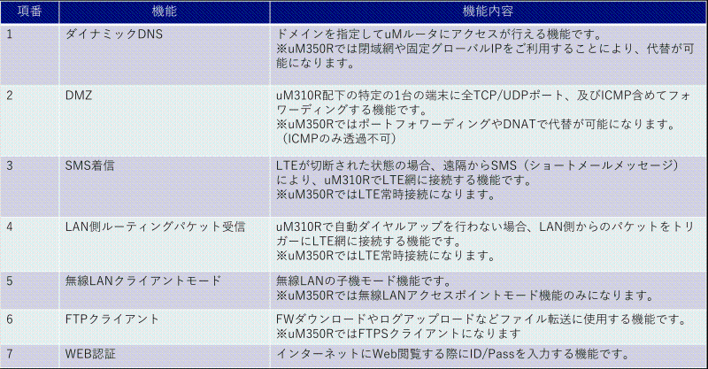 - Q uM310RからuM350Rに置き換えた際に利用できなくなる機能は?