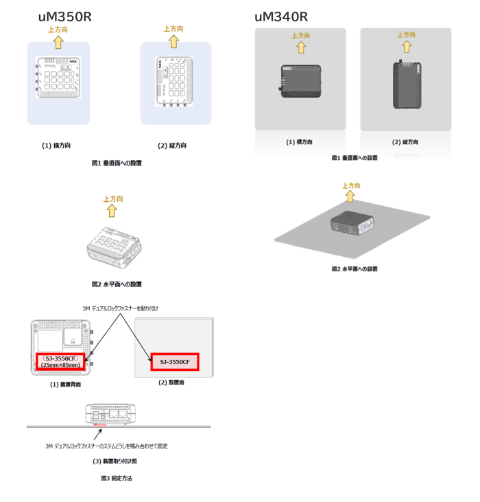uM340R:付属のブランケットを装置側面に装着し、ブランケットの取付用ネジ穴にねじ止めをして設置ください。